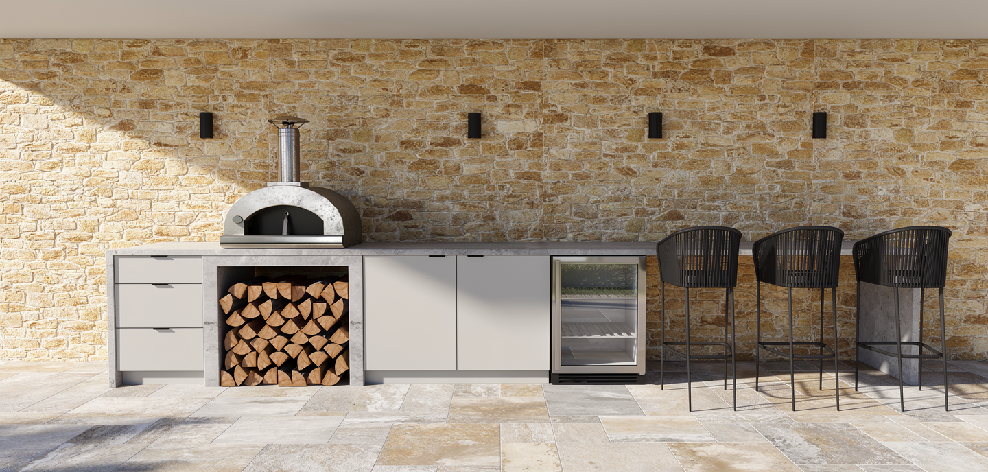 Outside, the brief was to create an entertaining zone that felt considered and purposeful. We designed a custom pizza oven and bar area with integrated storage, durable materials and a layout that works for casual family nights as well as larger gatherings.
